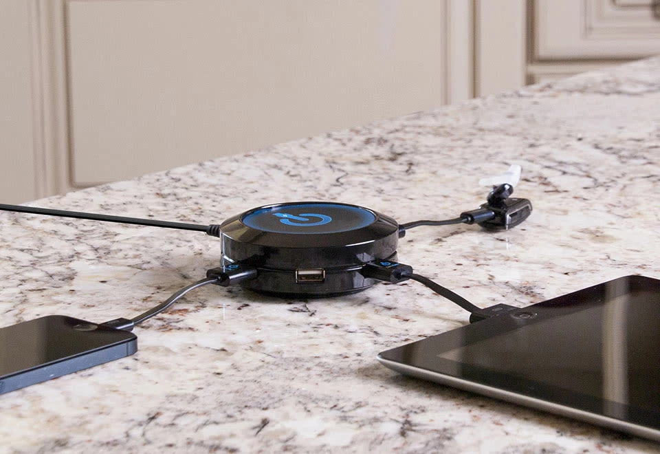 The 7-Device Charger makes sure all of your devices are safely powered up and ready to use… even in the car! It utilizes patented SmartSpeed™ technology, which provides the optimal charge (based on number and type of connected devices) for virtually all USB devices, including all Apple iOS devices, all Galaxy/Android devices, tablets, GPS devices and more. It has 7 ports and 48 Watts of total power delivery, to charge up to 7 USB devices simultaneously from a single power supply. Includes 7 cables (3 Lightning to USB cables and 4 Micro to USB charge cables.