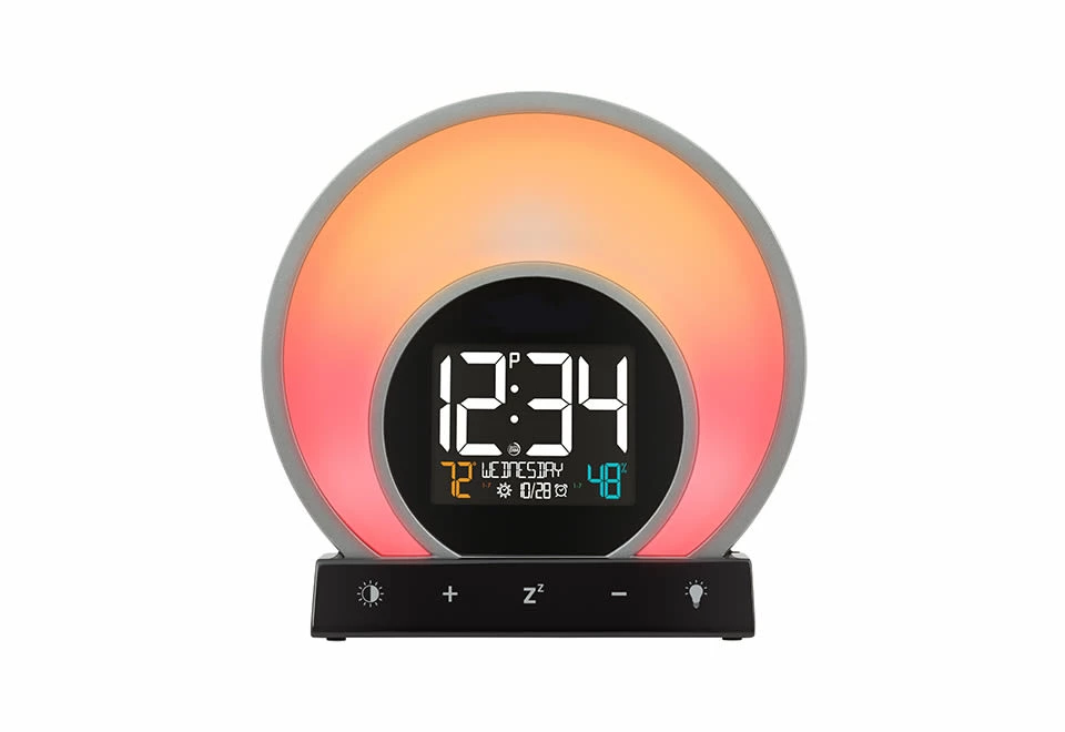The Circadian Rhythm Clock transforms your room into a peaceful, therapeutic oasis that lulls you to sleep and wakes you gently with soothing colors and guided breathing exercises.