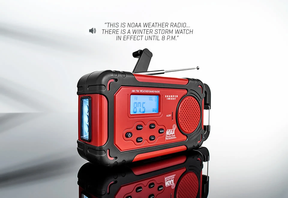 • Optional Weather Alert mode: weather radio will turn on automatically if there is a local weather alert from the National Weather Service in your listening area (blizzard, tornado, hurricane, flash flood warning, etc.)