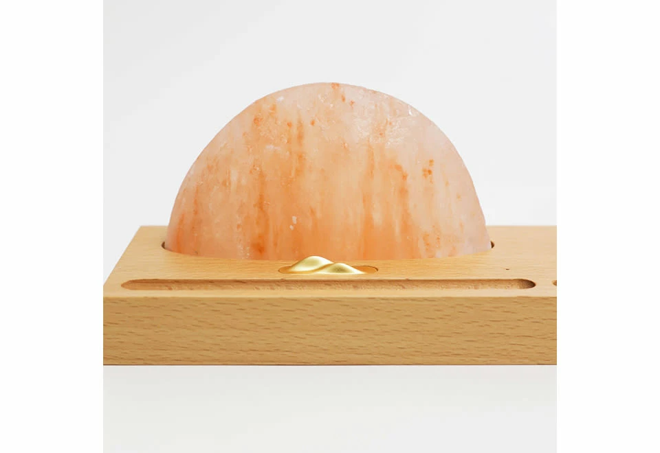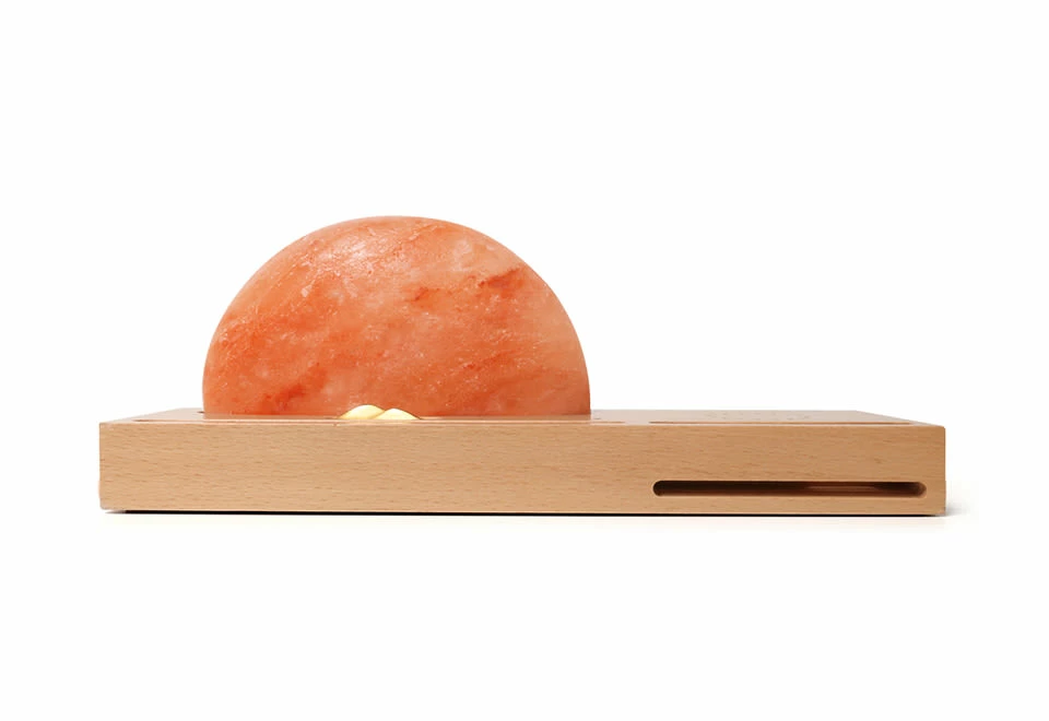 The Himalayan Salt Wireless Charger brings a warm glow to your desk or tabletop. Just plug it in and place your phone on the wooden base to begin charging.