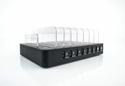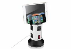 The Multi-Charging Wall Outlet is the elegant new way to charge 1 or 2 devices without messy wires. Just plug it into any AC wall outlet and dock your device(s) on top. You still have two live, available AC outlets for everyday use, plus 2 USB ports on the bottom. Includes Lightning charge tip (for iPhone/iPad) and Micro USB charge tip (for Galaxy/Android devices).