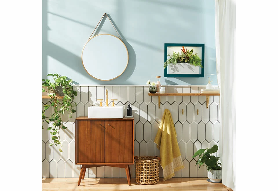 • Create a pleasing atmosphere with ferns, orchids and calatheas in the bathroom