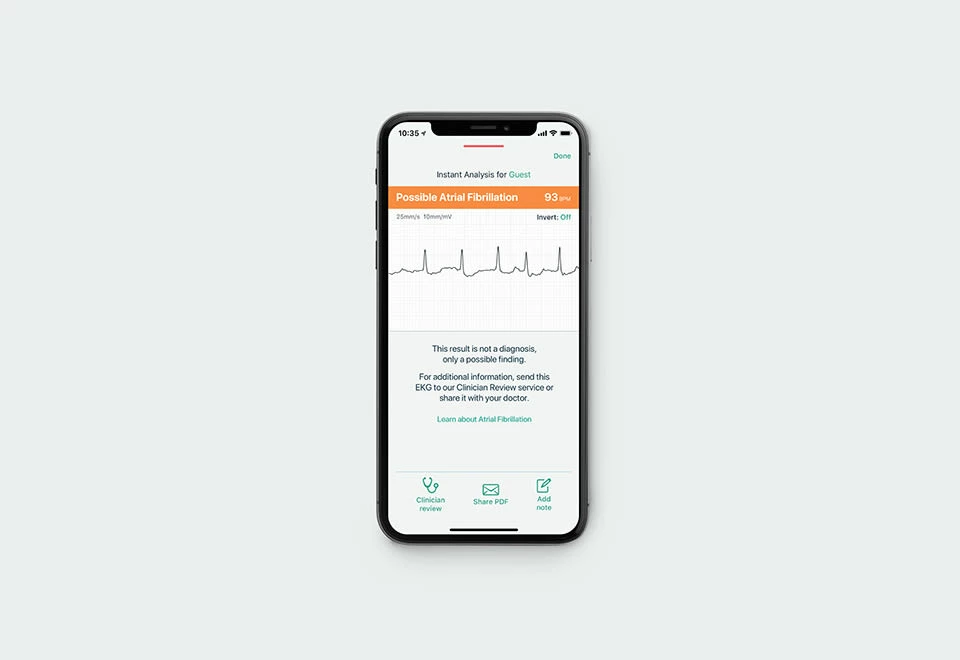 • Captures a medical-grade EKG from anywhere in 30 seconds, and gives you an instant analysis right on your smartphone