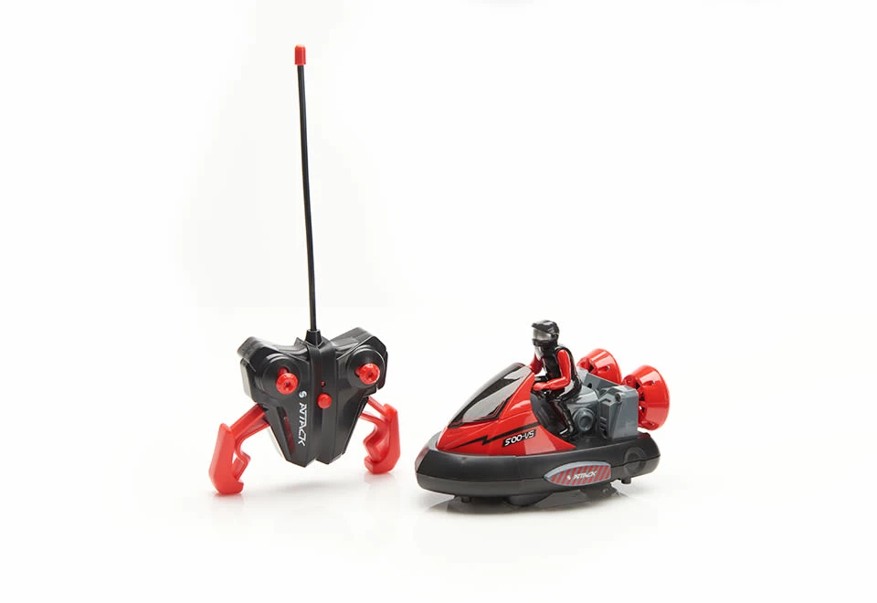 RC Bumper Cars is the two-player game that requires drivers to bump into their opponent’s crash sensor. A direct hit ejects the opponent with exciting sound effects.