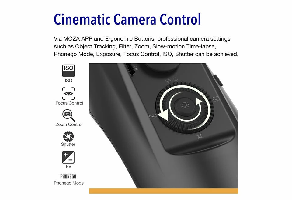 • Download the free MOZA App to control photo and video settings