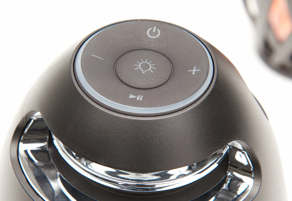 • Set of 2 wireless speakers with “flickering” LED torch light