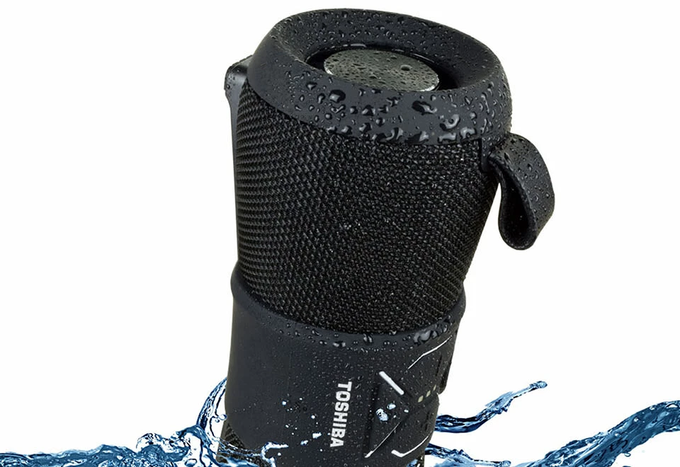 Make a splash with the Toshiba® TY-WSP200R Sonic Blast 3″ Waterproof Bluetooth Speaker!