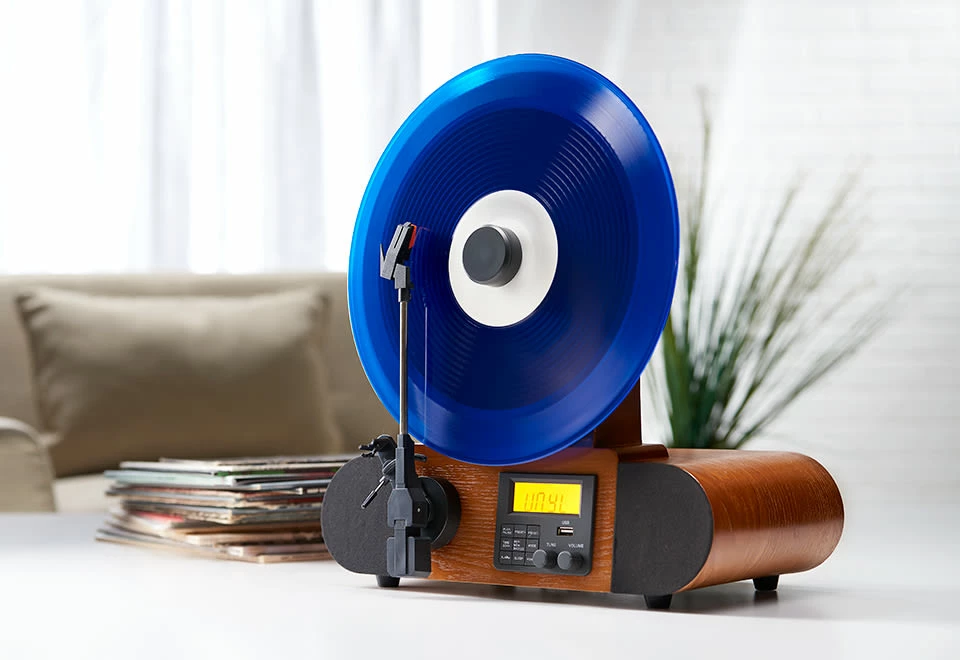 The Vertical Turntable is the ultimate way to play and enjoy your vinyl collection. It has stunning Mid-century style, with state-of-the-art Bluetooth connectivity to stream music from your phone or tablet.