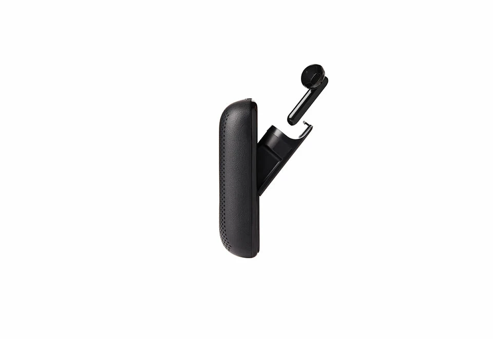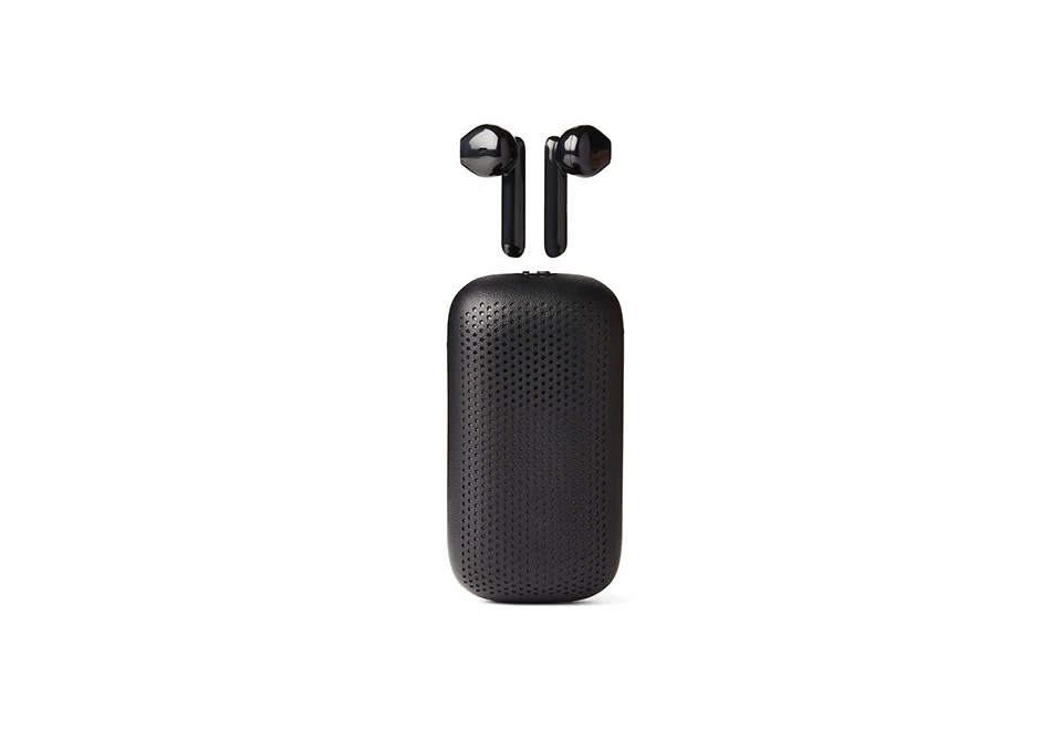• Up to 24 hours of play time on a full charge — 6 hours on the earbuds, 18 hours on the speaker/case
